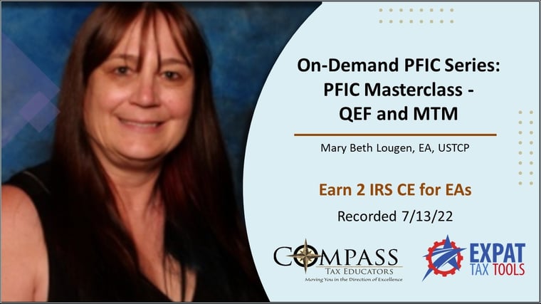 These courses provide a close look at the taxation of passive foreign investment companies and cover the default §1291 treatment as well as the §1296 mark to market and §1295 qualified electing fund elections. Form 8621 calculations included.